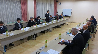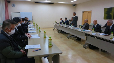 2025(R7)年12月10日、菱の実会館において第14回佐賀大学理工学部と菱実会(佐賀大学理工学部同窓会)との意見交換会を開催しました。出席者は大学側(学部長、副学部長、部門長、事務長)が8名、同窓会側(菱実会役員)が8名でした。