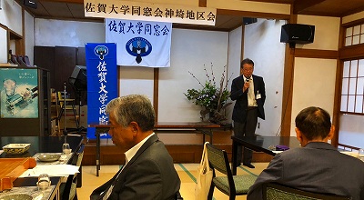 佐賀大学同窓会神埼地区会・交流会が2025(R7)年10月4日(土)、割烹「菊水」に於いて開催されました。参加者は神埼地区会員18名及び来賓6名でした。神埼地区会員の内訳は、有朋会5名、楠葉会2名、農学部7名、理工学部4名でした。当日は短時間大雨でJRが遅れて開始時間に間に合わない方もいらっしゃいました。