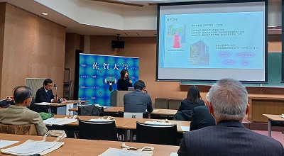 講演会では、2つの佐賀大学発ベンチャー企業の紹介がありました。鯉川雅之副学長による講演の趣旨説明の後、テトラクリエイト株式会社取締役社長の濱田悠菜氏(鹿児島大学大学院連合農学研究科)による「分子設計・合成、活性・毒性評価等のビジネスモデル」について、こよみる株式会社代表取締役の梶原薪氏(工学系研究科・博士後期課程修了)による「こよみでみまもる新しい見守りのカタチ」についての紹介がありました。